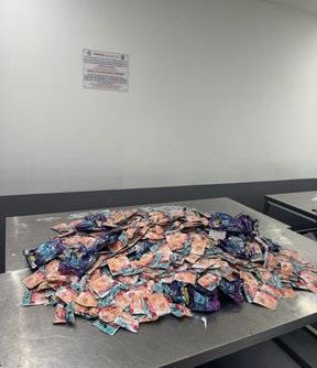 وقد رصدت أجهزة الفحص بالأشعة وجود جسم غريب داخل إحدى الحقائب الكبيرة، ما استدعى اتخاذ الإجراءات اللازمة والتأكد من محتوياتها بعد استلام المسافر لأمتعته. وبالفحص اليدوي الدقيق، تم العثور على كمية من مادة التنباك بلغ وزنها الإجمالي نحو 16 كيلوغراماً، وهي من المواد الممنوع إدخالها بموجب القوانين واللوائح الجمركية.